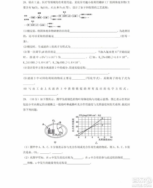 哈尔滨市第六中学18 19学年度上学期期末考试高三理科综合试题及答案 答案圈